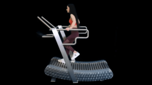 against the bottom of the treadmill
